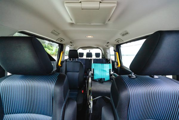 6輪タイプの電動車椅子の受け入れも可能です その場合、付き添い者は最大3名まで(助手席足元狭くなります)