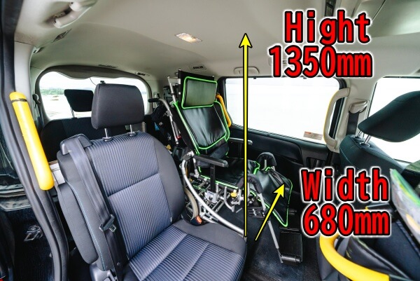 標準型車椅子1名に付き添い者は最大で5名まで合計6名乗車可能です
