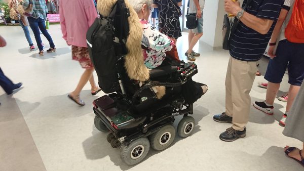 背もたれが倒れるリクライニング車いすや大型の電動車椅子なら付き添い者は最大3名までです。