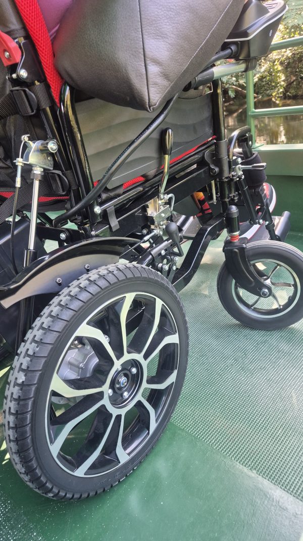 それにしてもお客様の車椅子かっちょいい!!!ホイールデザインがイカすなぁ。走り屋系電動車いすって感じですね。