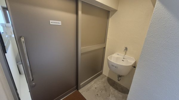 アクセシブルトイレ入口手前右側には、人工肛門患者のためのオストメイト設備らしきものが確認できました。